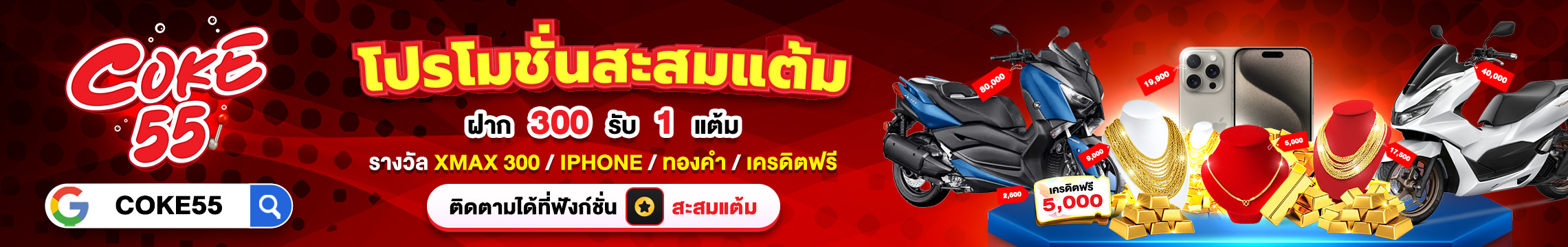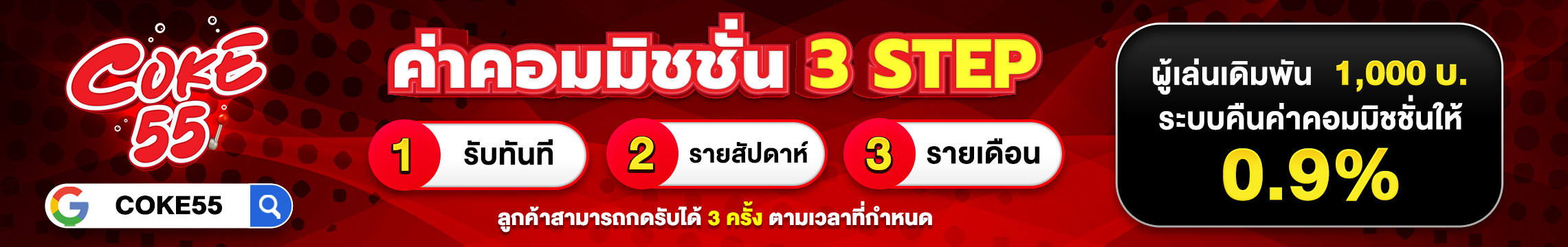 สำหรับสมาชิกใหม่ coke55 มีโปรโมชั่นต้อนรับสุดพิเศษ นั่นคือโบนัส 100% จากยอดฝากแรก ตัวอย่างเช่น ถ้าคุณฝากเงิน 1,000 บาท คุณจะได้รับโบนัสอีก 1,000 บาท รวมเป็นเงินในบัญชี 2,000 บาท แต่อย่าลืมอ่านเงื่อนไขการรับโบนัสให้ละเอียด เพราะจะมีข้อกำหนดเรื่องการทำยอดเทิร์นโอเวอร์ก่อนที่จะสามารถถอนเงินได้